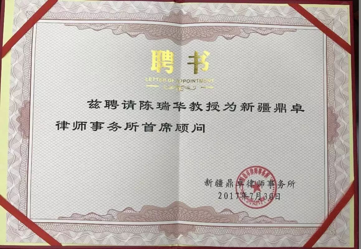 陈瑞华为北京大学法学教授,博士生导师。“全国十大中青年法学家”,教育部“长江学者奖励计划”特聘教授,国务院政府特殊津贴获得者,入选国家“百千万人才工程”计划。兼任国际证据法协会理事、最高人民检察院专家咨询委员会委员、中国检察理论研究会副会长、最高人民检察院和最高人民法院案例指导专家委员会委员、公安部执法监督员。